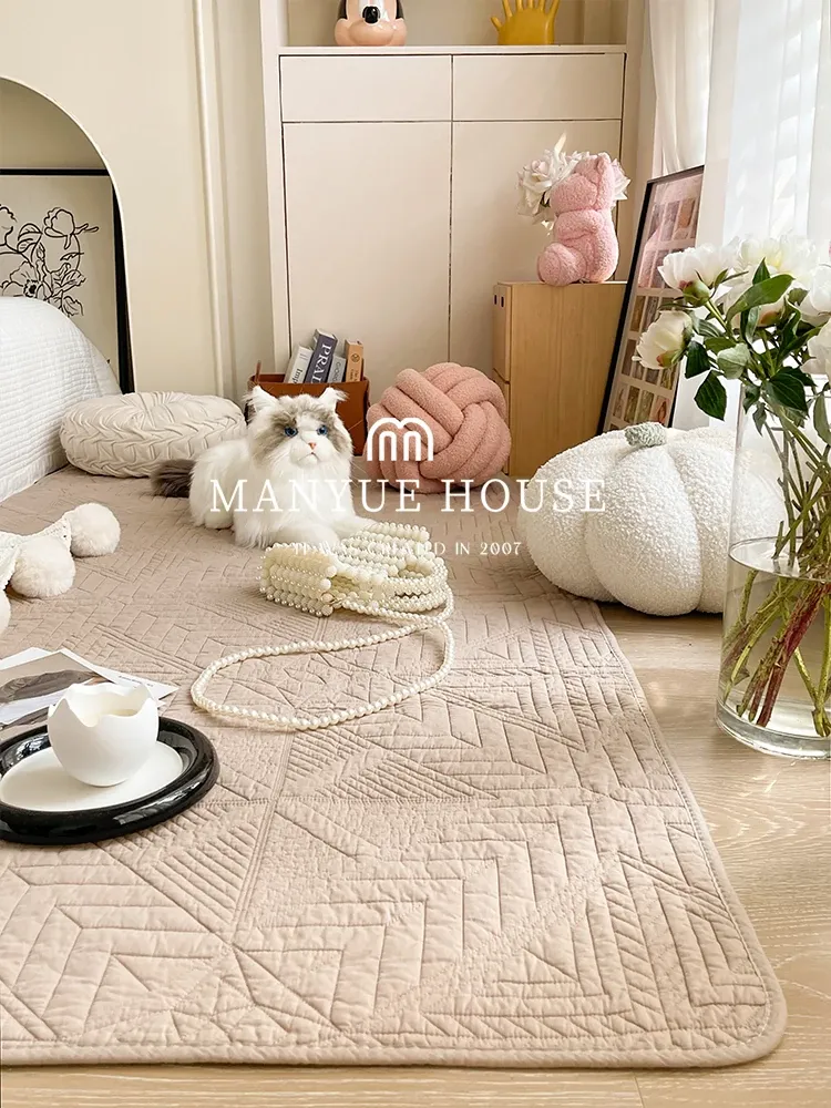 蔓越家 在庫一掃セール!北欧スタイルのキルティング滑り止めマット - リビングルームやベッドサイドに最適な四季折々のラグ&ブランケット!快適さとおしゃれを両立!