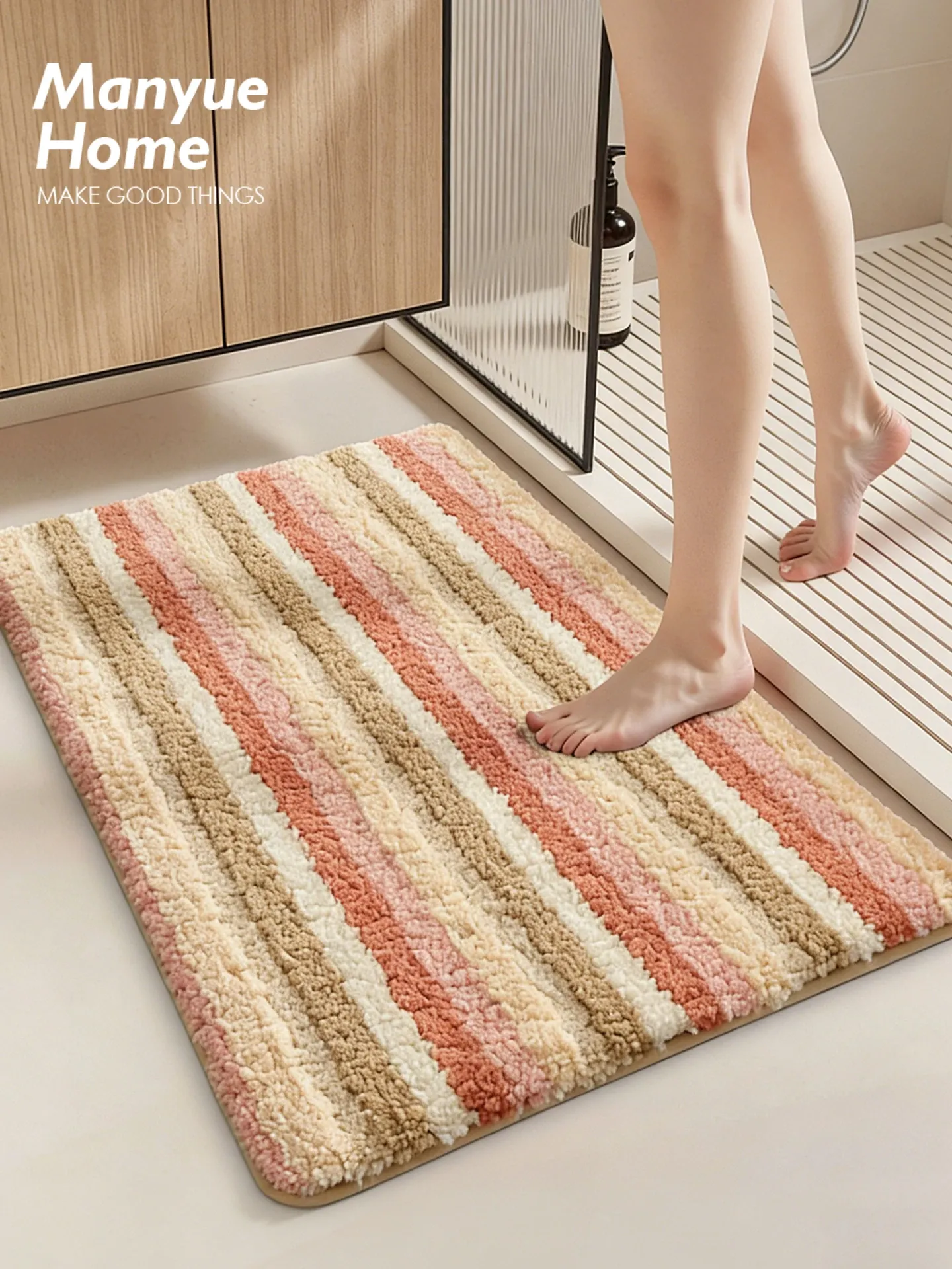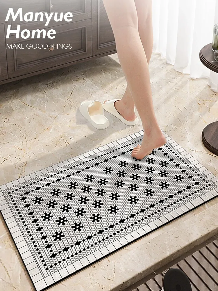 蔓越家 ソフトシリカゲル吸水バスマット - おしゃれで滑り止め付き、洗面所やトイレの入り口に最適な軽奢なデザイン!快適なバスタイムを演出します。