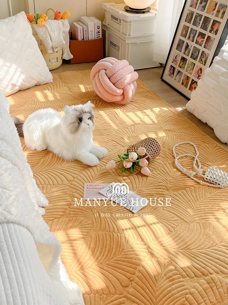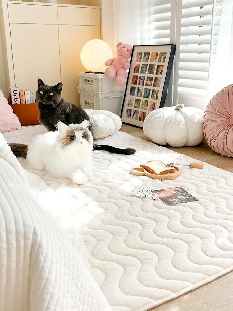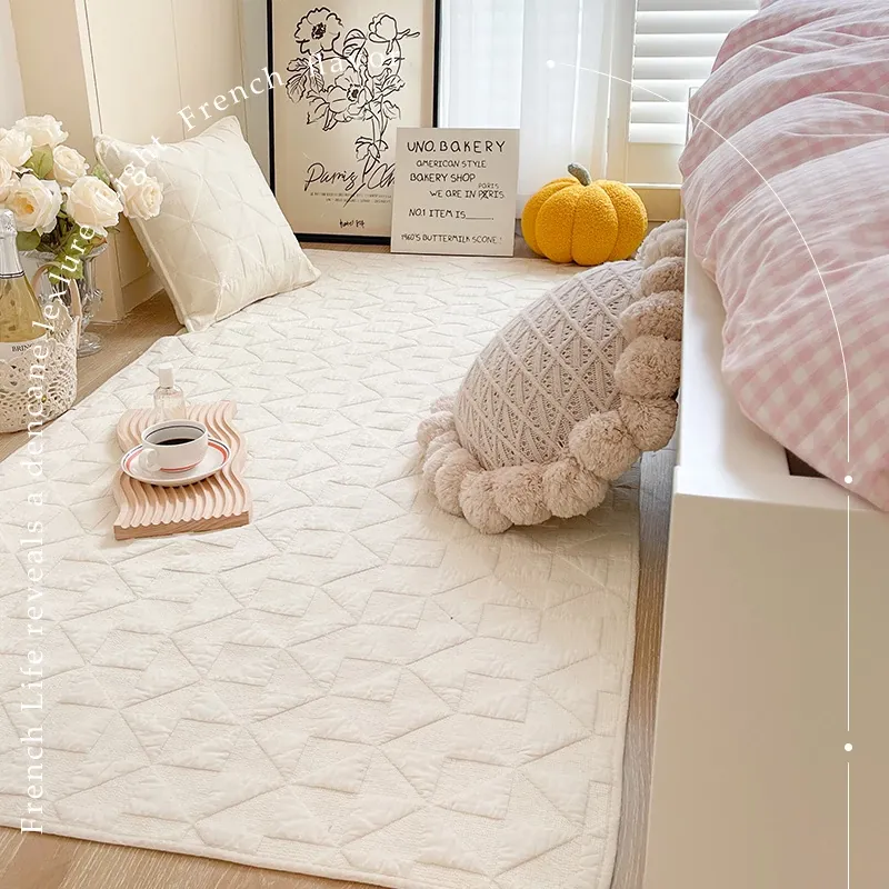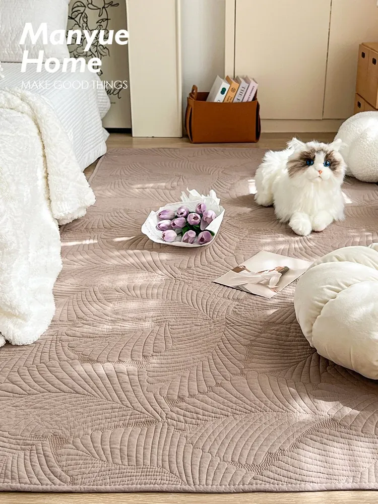 蔓越家のクリームカラー北欧スタイル全棉ベッドサイドマット・寝室ラグ・ピュアコットンリビングルーム用・滑り止め付きのタタミマットで、快適さとスタイルを両立!