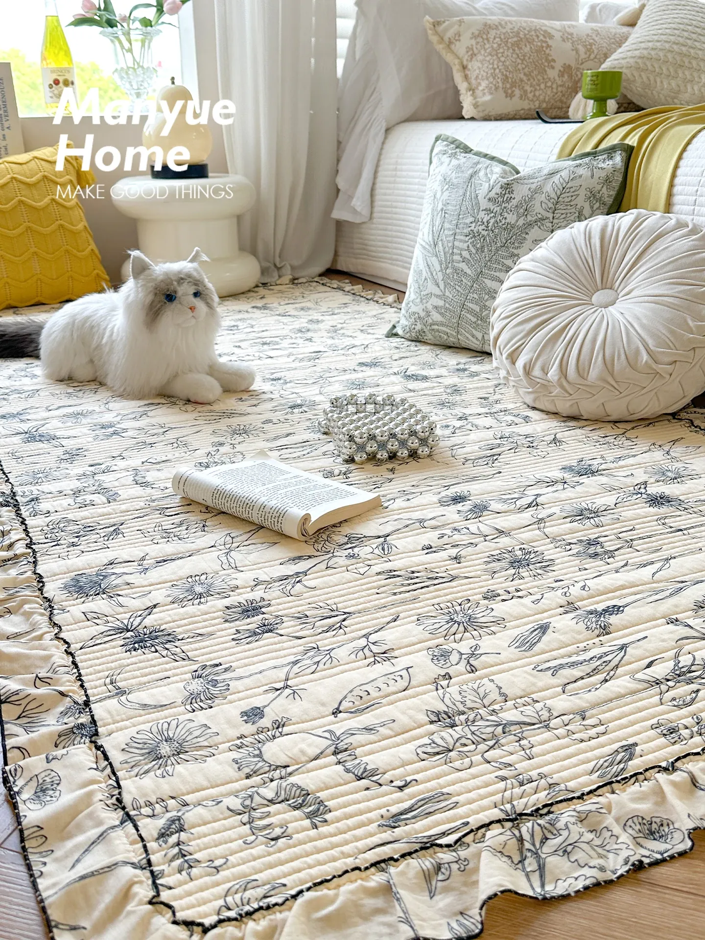 マンゴーハウス 少女の心をくすぐる花柄のベッドサイドマット - 通気性抜群の純綿ダブルレイヤー、滑り止め付きで安心!お部屋を華やかに彩るフルカバーラグ。