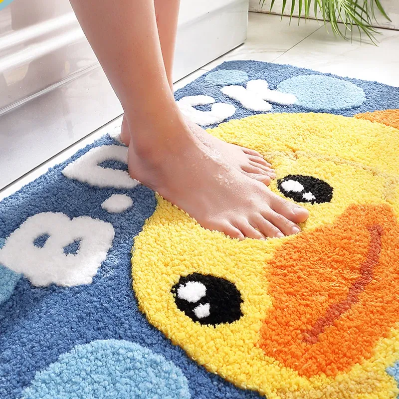 かわいい小さなアヒルのカートゥーンデザイン!吸水性抜群のバスマット、滑り止め付きで安心。トイレやバスルームにぴったりな可愛らしいマットで、毎日の生活に彩りを加えましょう!