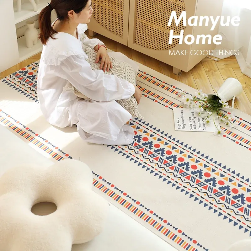蔓越家 北欧スタイルのレトロなコットンリネンラグ!寝室や民宿に最適なベッドサイドマット、リビングルームのソファやテーブルの足元をおしゃれに演出します。快適さとデザインを兼ね備えた一品です!