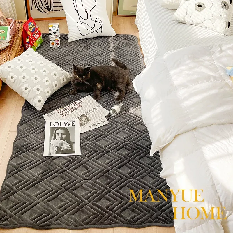 マンヨク家のレトロキルティング全棉ベッドサイドマット、寝室用カーペット、リビングルームのコーヒーテーブルマット、畳全敷きマット - 自然な風合いでお部屋を優雅に演出!