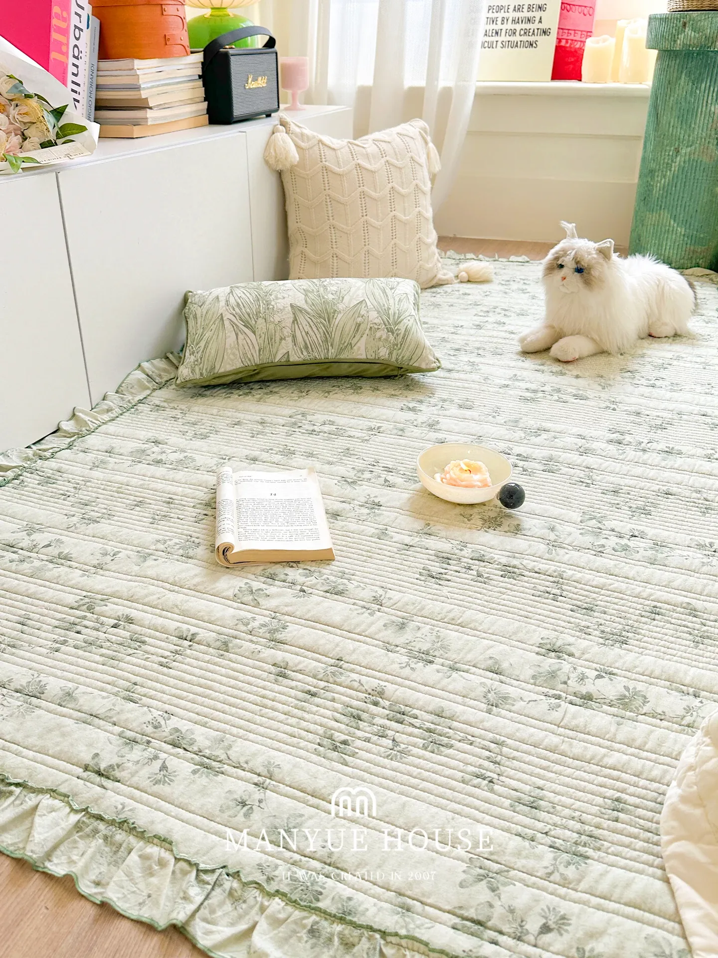 マンゴーアート インスタ映え 文芸的な民宿用 洗えるコットン製 フルコットンのラグ 家庭用 リビングルーム向け キルティングデザイン ベッドサイドマット 足元マット