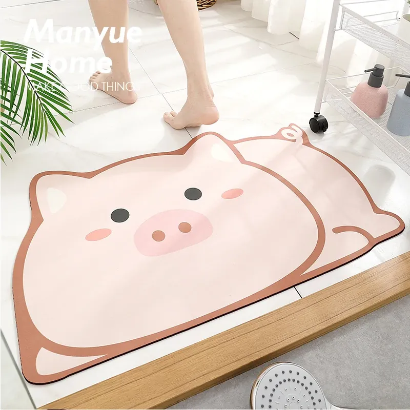 蔓越家 吸水バスマット 脱水不要の防滑トイレマット【ピンクブタ】 - おしゃれで機能的、快適なバスタイムを演出!