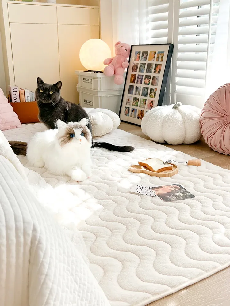 蔓越家 インスタ映えするクリーム色のミルクフリースラグ、寝室やリビングに最適!滑り止め付きで安全性も抜群。おしゃれなテーブルマットとしても使える、万能な家庭用マットです。