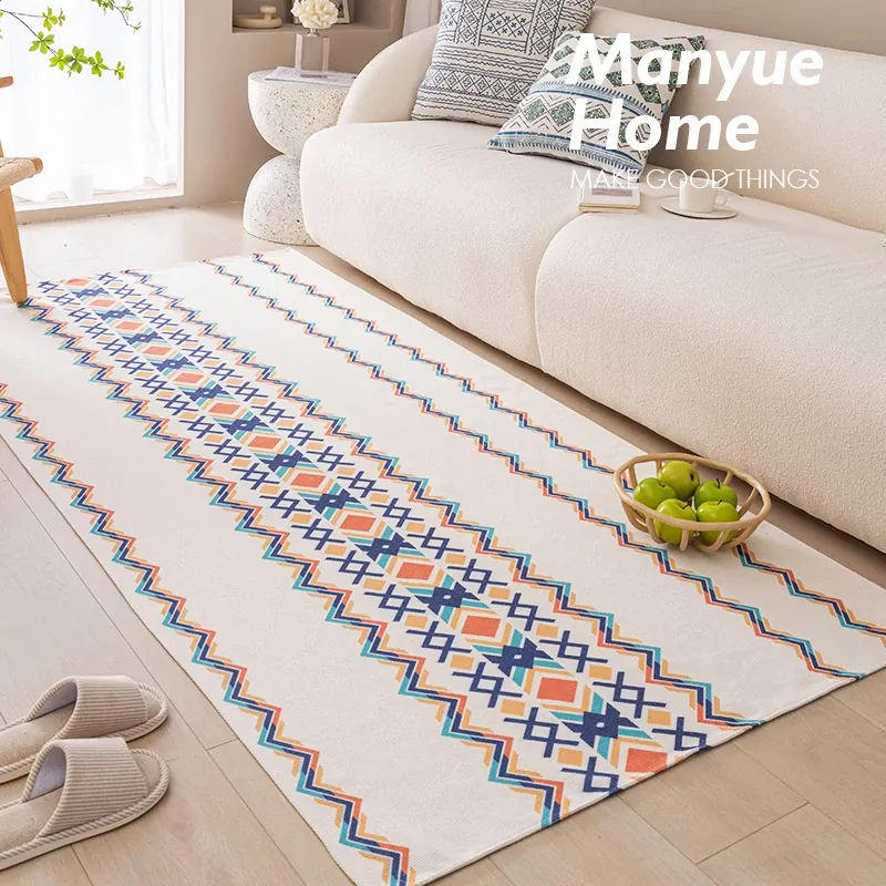 蔓越家 北欧スタイルのレトロなコットンリネンラグ!寝室や民宿に最適なベッドサイドマット、リビングルームのソファやテーブルの足元をおしゃれに演出します。快適さとデザインを兼ね備えた一品です!