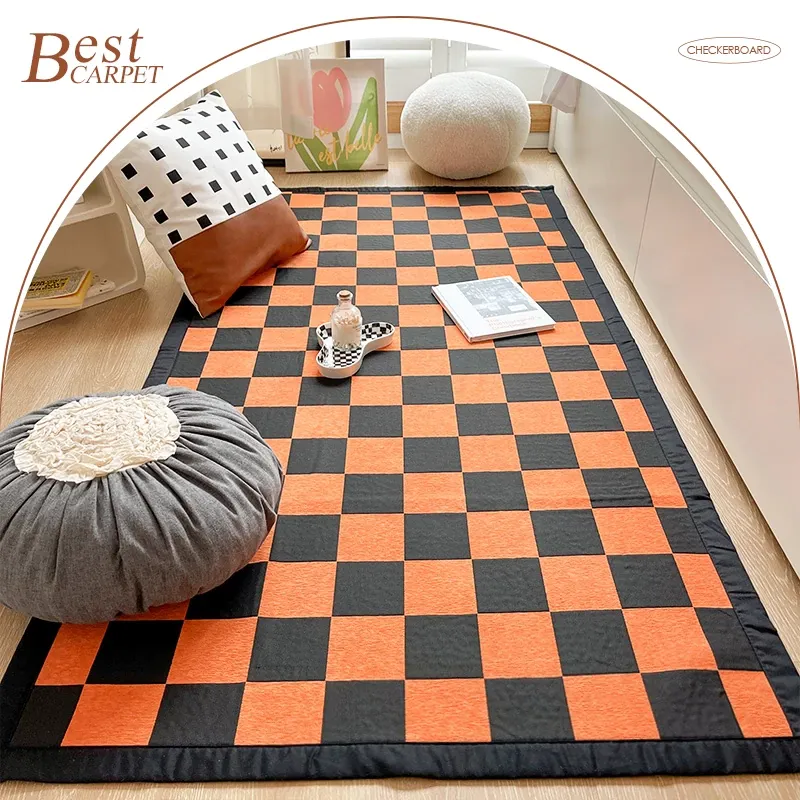 Vintage Checkered Chenille Area Rug for Living Room - Cozy Home Carpet Mat for Bedroom and Bedside Décor - Perfect Addition to Your Home Style