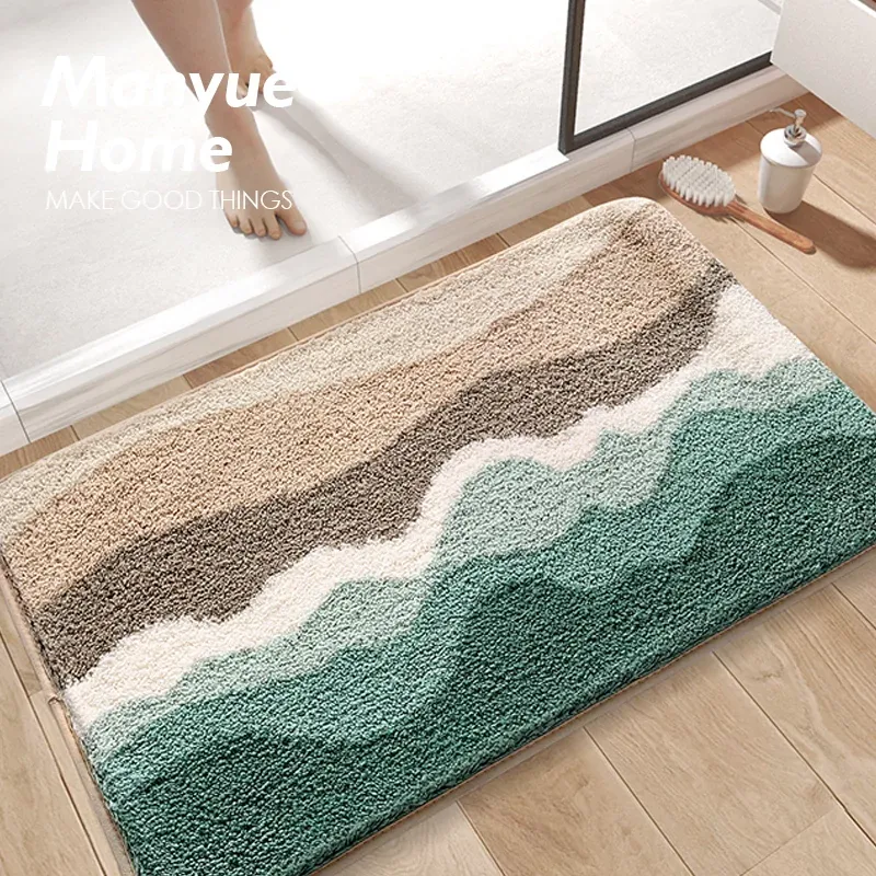 吸水性抜群!バスルーム・トイレ用滑り止めマット - 蔓越家の快適な家庭用エントランスマットで、洗面所や浴室の足元をしっかりサポート!おしゃれで安心のトイレマットで、清潔感あふれる空間を演出。