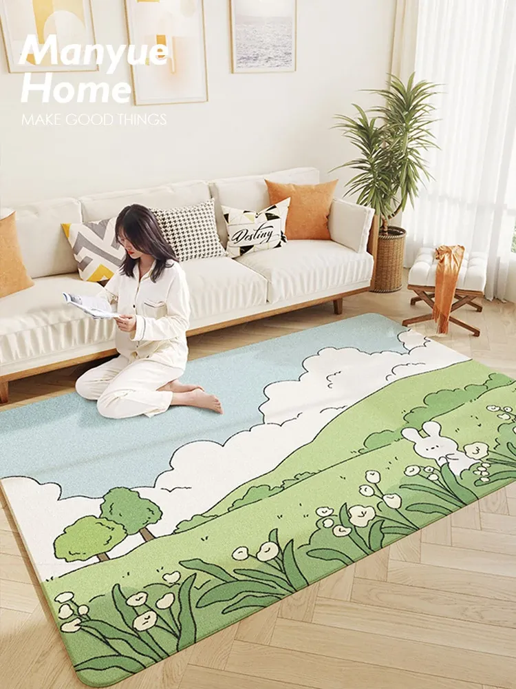 蔓越家のルームカーペット - 猫と遊びながらリラックスできる、寝ても座っても心地よいフロアマット!ベッドサイドやリビングのテーブルの下にぴったり、空間を華やかに彩る必須アイテム!