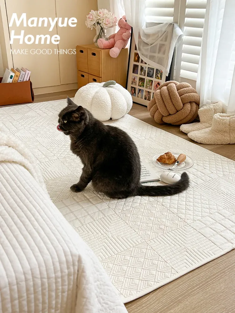 蔓越家 インスタ映えキルティング全棉コットンマット - お部屋を彩る洗えるラグ、リビングやベッドサイドに最適なフロアマット!