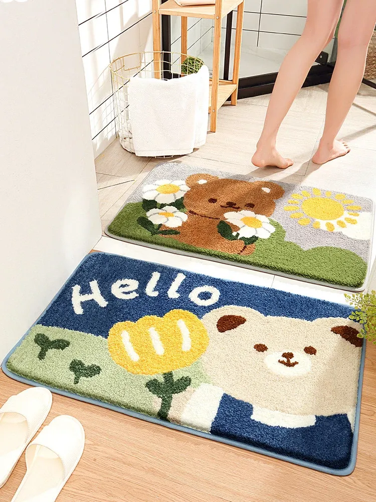 蔓越家 厚手浴室吸水マット|シンプル防滑トイレカーペット|フロック加工で滑り止め効果抜群|おしゃれなトイレ入口マットで、快適なバスタイムを実現!