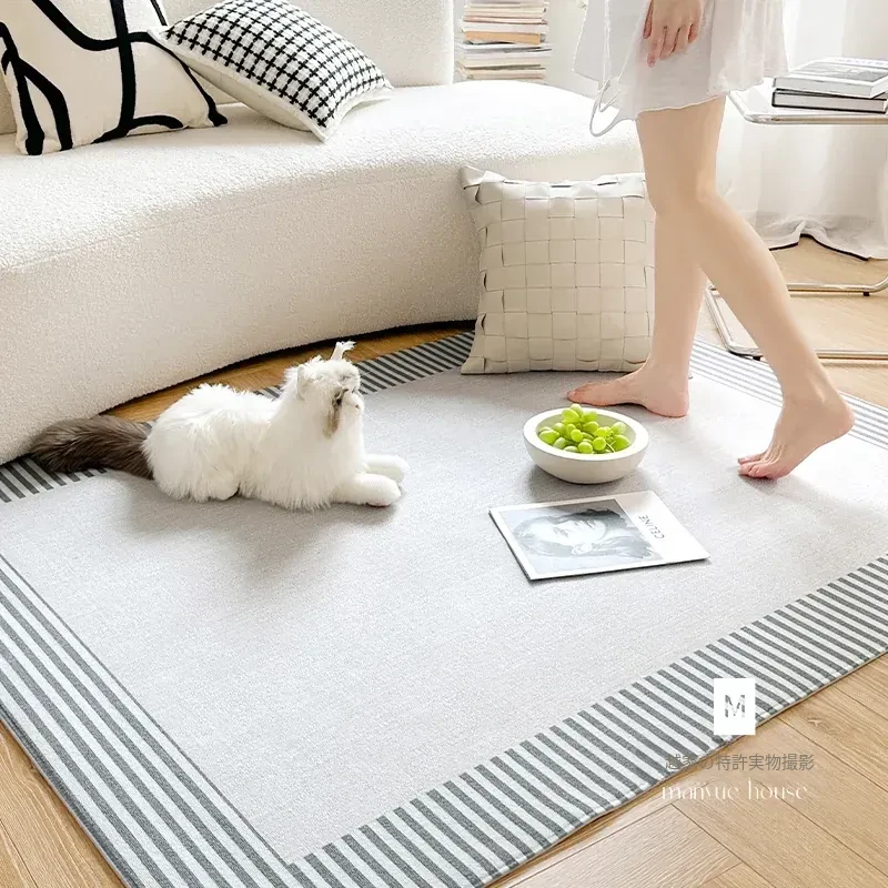 蔓越家のクリームカラー北欧スタイル全棉ベッドサイドマット・寝室ラグ・ピュアコットンリビングルーム用・滑り止め付きのタタミマットで、快適さとスタイルを両立!