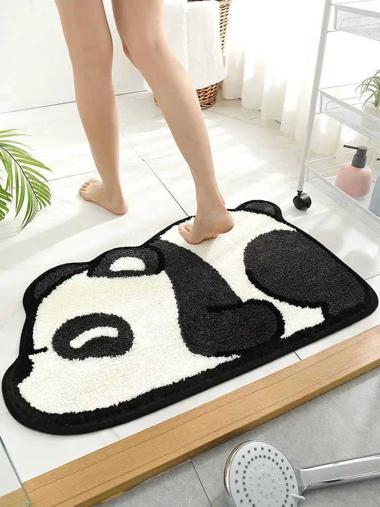 蔓越家 浴室用吸水マット - 滑り止め機能付き!トイレ前の完璧なデザイン、テクノロジー繊維採用の大きなパンダデザインで、快適さと安全を両立。おしゃれなバスルームに最適!