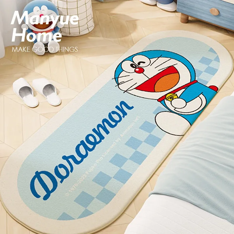 かわいいドラえもんデザインのベッドサイドカーペット!子供部屋や寮、リビングのテーブルマットにもぴったり。ふわふわの座り心地で、快適さをプラス。お子様の部屋を楽しく彩るアイテムです!